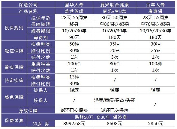 蓋世英雄保障的特定疾病有13種,如果被保人不幸患了這13種特疾中的一種,那么保險(xiǎn)公司除了給付基本保額,還額外給付基本保額的30%。
