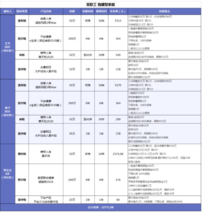 對(duì)于這類收入穩(wěn)定、基本無(wú)負(fù)債的家庭,我們可以這樣規(guī)劃保障: