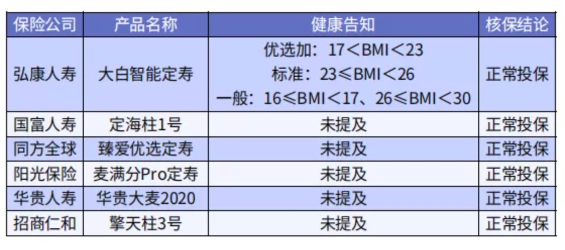 也就是說無論是超重還是偏瘦的人群,只要能通過健康告知,都能順利買到壽險。