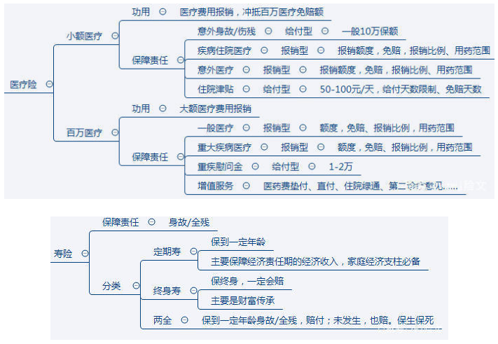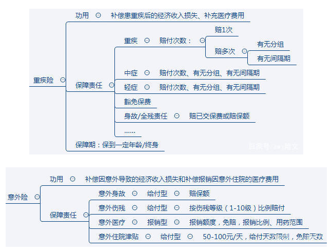 這里對四大人身險(事故、醫(yī)療、 重疾、壽險)常見類型做一個簡短的描述?