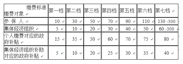 城鄉(xiāng)居民社會養(yǎng)老保險(xiǎn)繳費(fèi)標(biāo)準(zhǔn)(單位:元/月)
