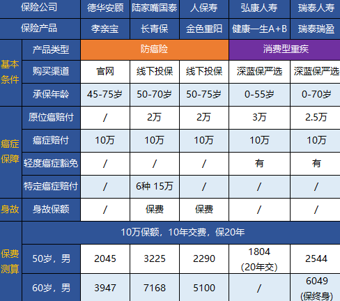 定期防癌險:只注意癌癥保障本身,沒有返還分紅等因素,保障幾十年,所以價格便宜,強烈建議預算不足的家庭;