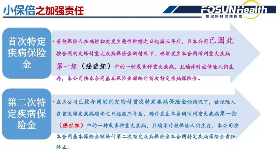 2、第一或第二大病是一種惡性腫瘤,它引發(fā)特定疾病賠付,除基本第二大病賠付外,可以再賠付2次特異性疾?。ㄩg隔3年)。