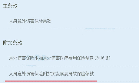突發(fā)疾病保障作為額外風(fēng)險(xiǎn)存在,例如,上面的綜合意外險(xiǎn),猝死保障作為額外的風(fēng)險(xiǎn)存在。