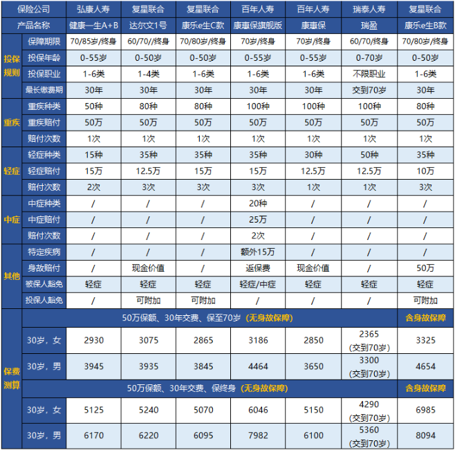 如果你想要最具成本效益:百年康惠保、復(fù)星康樂e生C 款是一個不錯的選擇,不僅保障足夠,而且費率優(yōu)勢明顯;