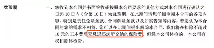 簡單地說,在購買保險后的10天內(nèi),如果您認為您購買錯了、后悔了、與代理商描述的不一樣;你可以在猶豫期內(nèi)隨時申請退保,保險費用完全撤退!如果您在線下購買,可能會扣除10元的費用。如果猶豫期結(jié)束,即使被保險人違約,損失也會相對較大。
