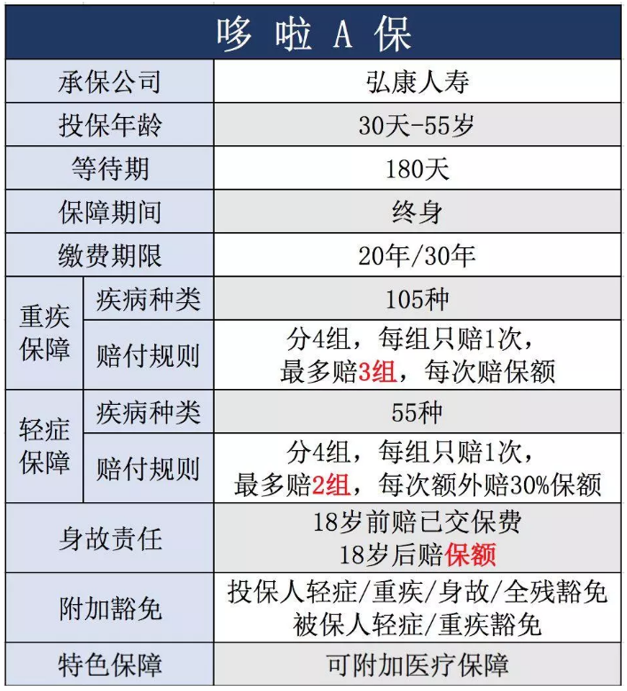 哆啦A保的最大優(yōu)點(diǎn)是它將105種嚴(yán)重疾病分為四組,每組代表一種疾病。