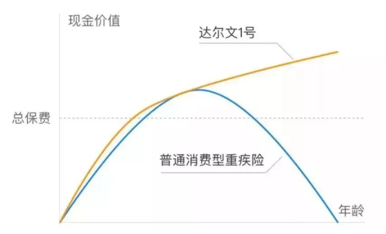 一般消費類型的重大疾病保險的現(xiàn)金價值是第先高后低的趨勢,但達爾文1號的現(xiàn)金價值隨著年齡的增長而增加,并且可以返回保額的95%。用消費型的價格購買返還類型的價值。