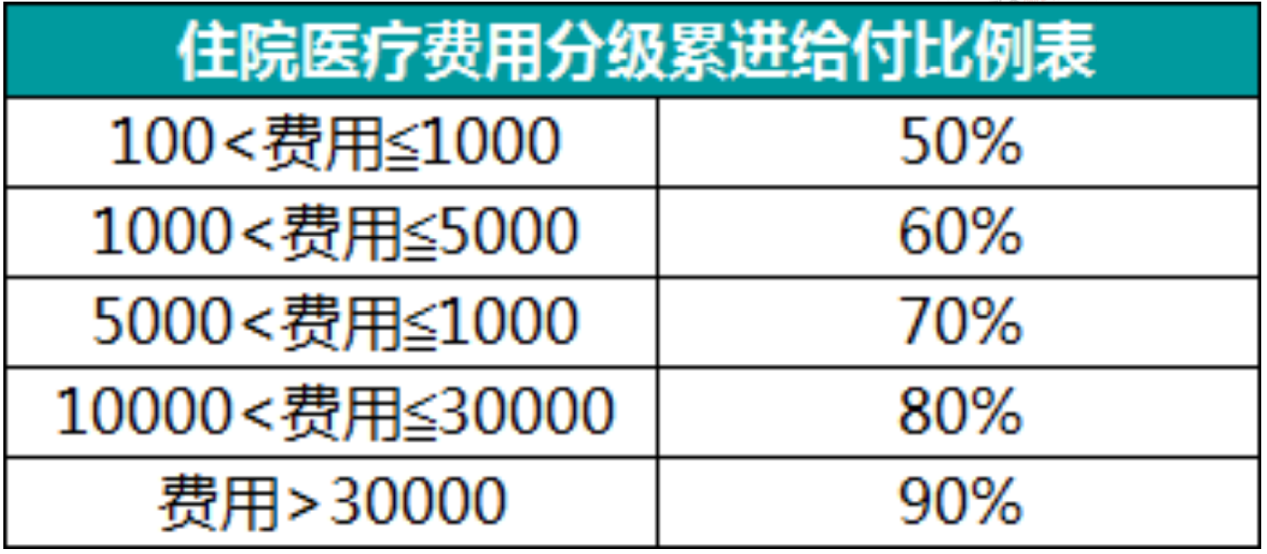 如果沒有社保報(bào)銷,或社保報(bào)銷不超過70%,那么它將采取累進(jìn)報(bào)銷的形式。不到1000元只能報(bào)銷50%,花的越多,報(bào)銷率越高,超過30,000的費(fèi)用可以報(bào)銷90%。具體的報(bào)銷方法如下: