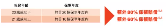 5. 長(zhǎng)達(dá)首20年獲享額外最高80%保額賠償