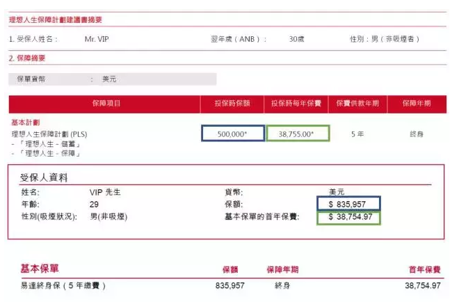 「易達(dá)終身保」作為一款終身壽險(xiǎn),與相同的保費(fèi)可以移動(dòng)壽險(xiǎn)保額在同類產(chǎn)品中具有明顯的優(yōu)勢。與大陸產(chǎn)品相比,被稱為“內(nèi)地最具成本效益的終身壽險(xiǎn)橫琴“優(yōu)愛寶””,很容易被「易達(dá)終身?!箵魯?。與香港產(chǎn)品相比,例如,一名29歲(30歲)非吸煙男性為例,對于保費(fèi)壽險(xiǎn)而言,5年年繳保費(fèi)的為38,755美元,以及「易達(dá)終身?!箍梢蕴峁┍n~的死亡。 836,000美元,而保誠的理想人生僅提供 500,000美元,而「易達(dá)終身?!固峁└叩谋WC收益率和預(yù)期回報(bào)。