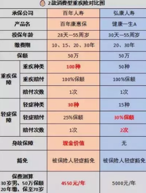 百年康惠保和健康一生A進(jìn)行比較。圖中的紅色字符各自具有優(yōu)勢。