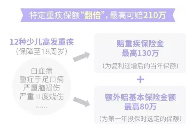 2、特異性嚴(yán)重疾病保額更高:12種兒童患有高比重疾病保額“翻倍”,最高可賠付210萬