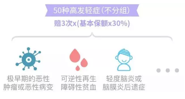 3、基本保障扎實(shí):100種重病+ 50種輕癥,輕癥可不分組賠付3次。